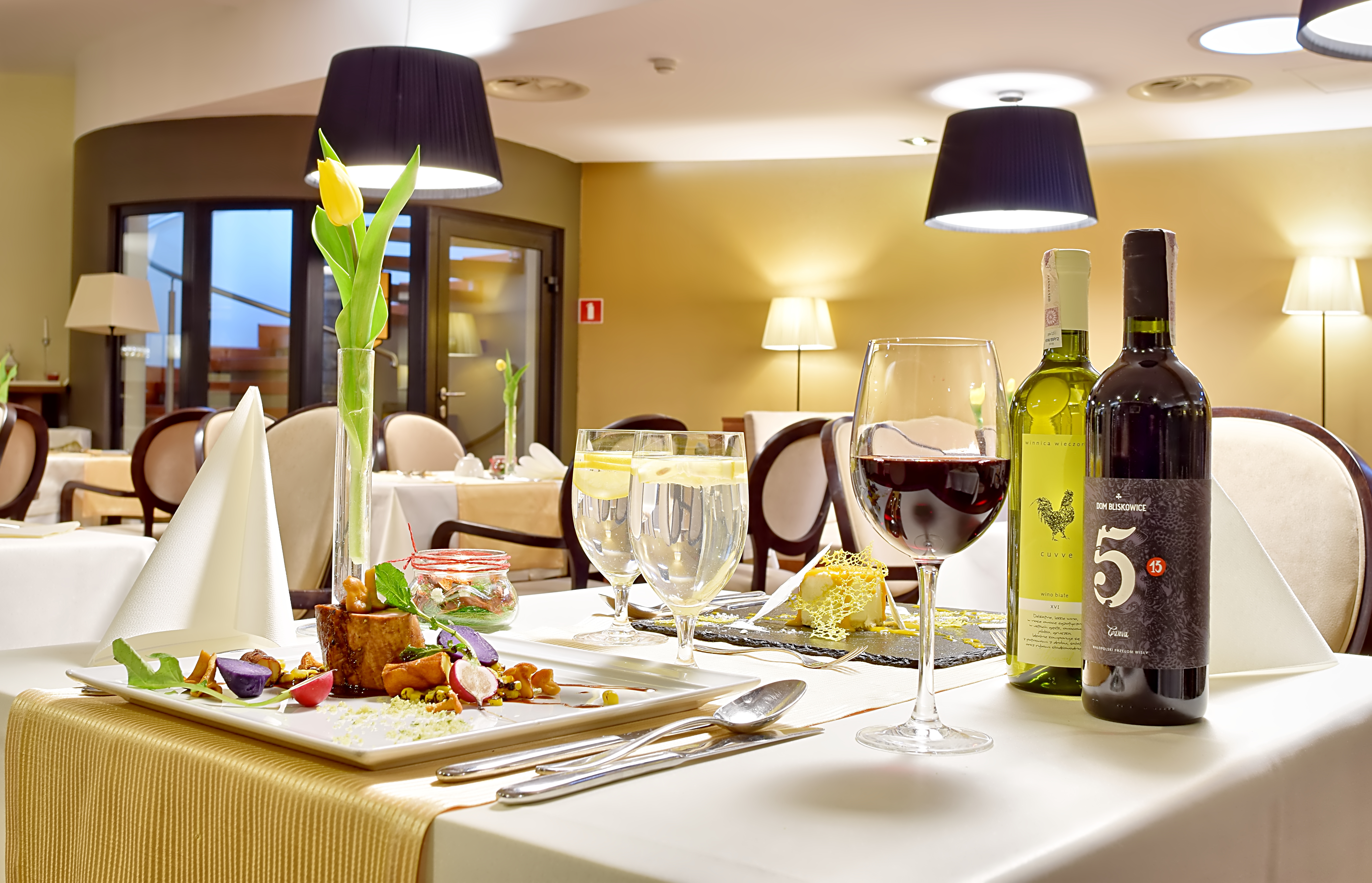* Walentynowa kolacja przy świecach z lampką wina z winnicy z okolic Kazimierza Dolnego (przystawka, danie główne, deser)